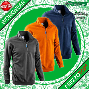 Felpa con zip corta.Fascia parasudore interna al collo.Elastico ai polsi e in vita.