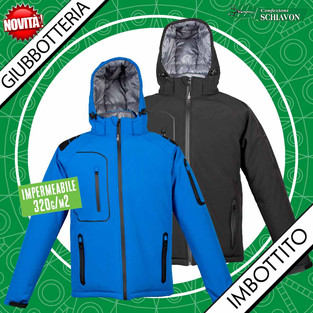 Giubbino imbottito in softshell a tre strati, impermeabile e traspirante.
